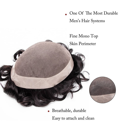 FINEMONO | Fine Mono With PU Toupee Human Hair Replacement Hair Piece